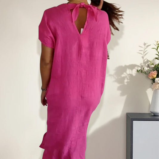 🎉Sukienka w jednolitym kolorze z bawełny i lnu