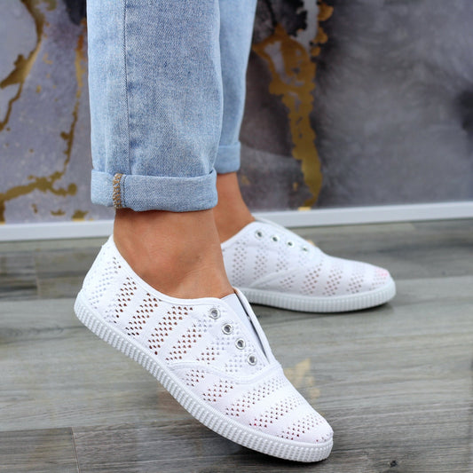 Białe ażurowe tenisówki damskie sportowe espadryle Minis