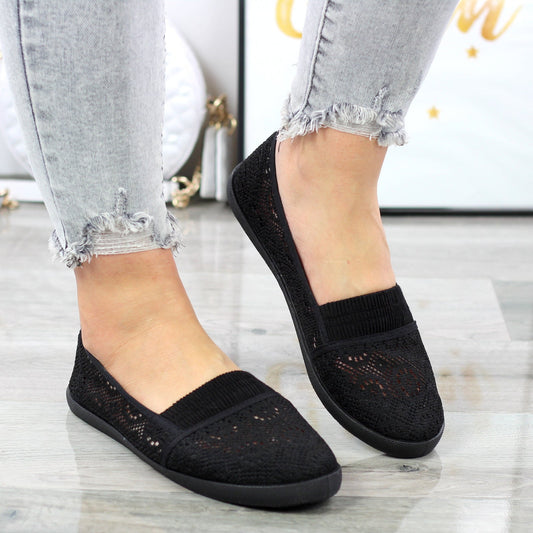 Czarne ażurowe tenisówki damskie sportowe espadryle Minis