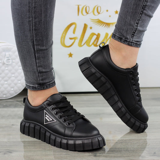 Czarne Wygodne Koronkowe Trampki Tenisówki Gumka