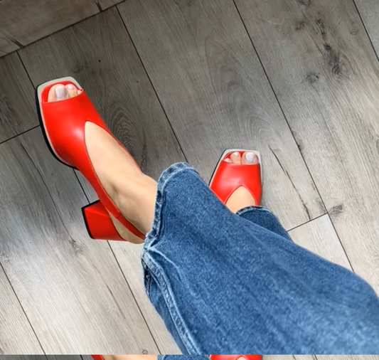 Sandały z grubym obcasem i noskiem typu ryba