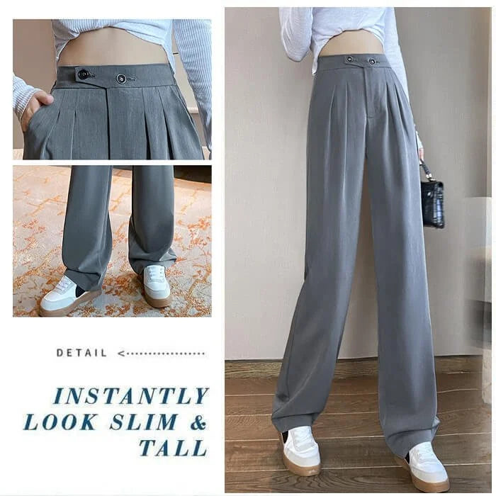 • Plisowany krój dobrze ukrywa tłuszcz na nodze, dzięki czemu noga jest smukła i smukła. Szerokie proste nogawki, luźny krój Odpowiedni dla wszystkich kobiet.
