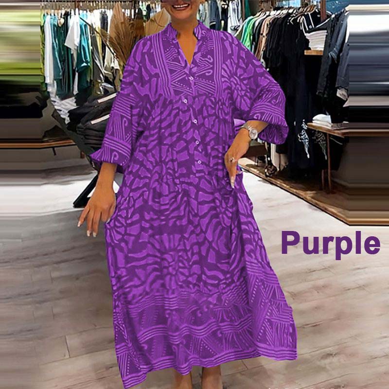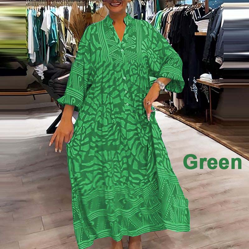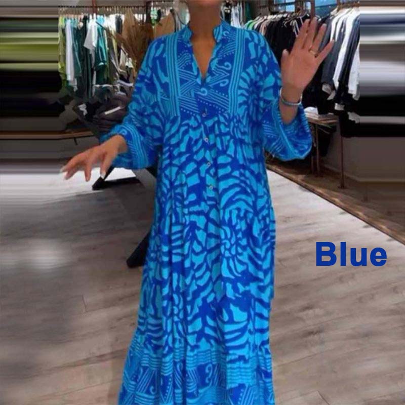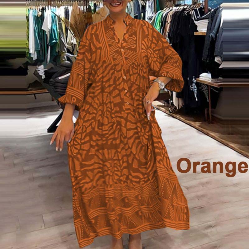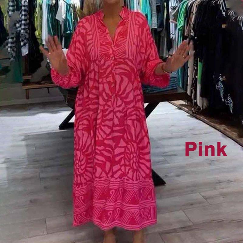 Damska luźna sukienka z nadrukiem i dekoltem w kształcie litery V