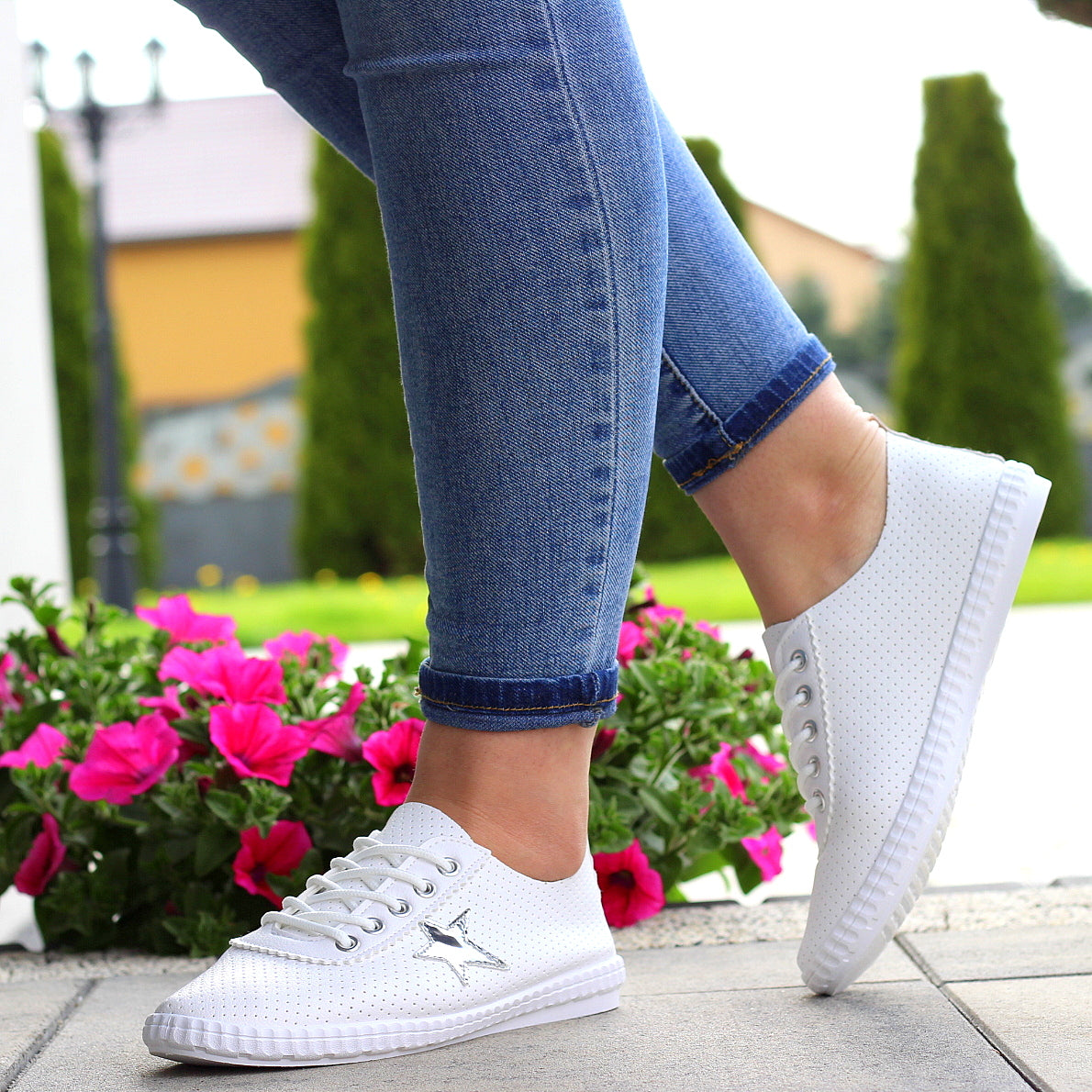 BIAŁE SKÓRZANE TENISÓWKI TRAMPKI DAMSKIE STAR