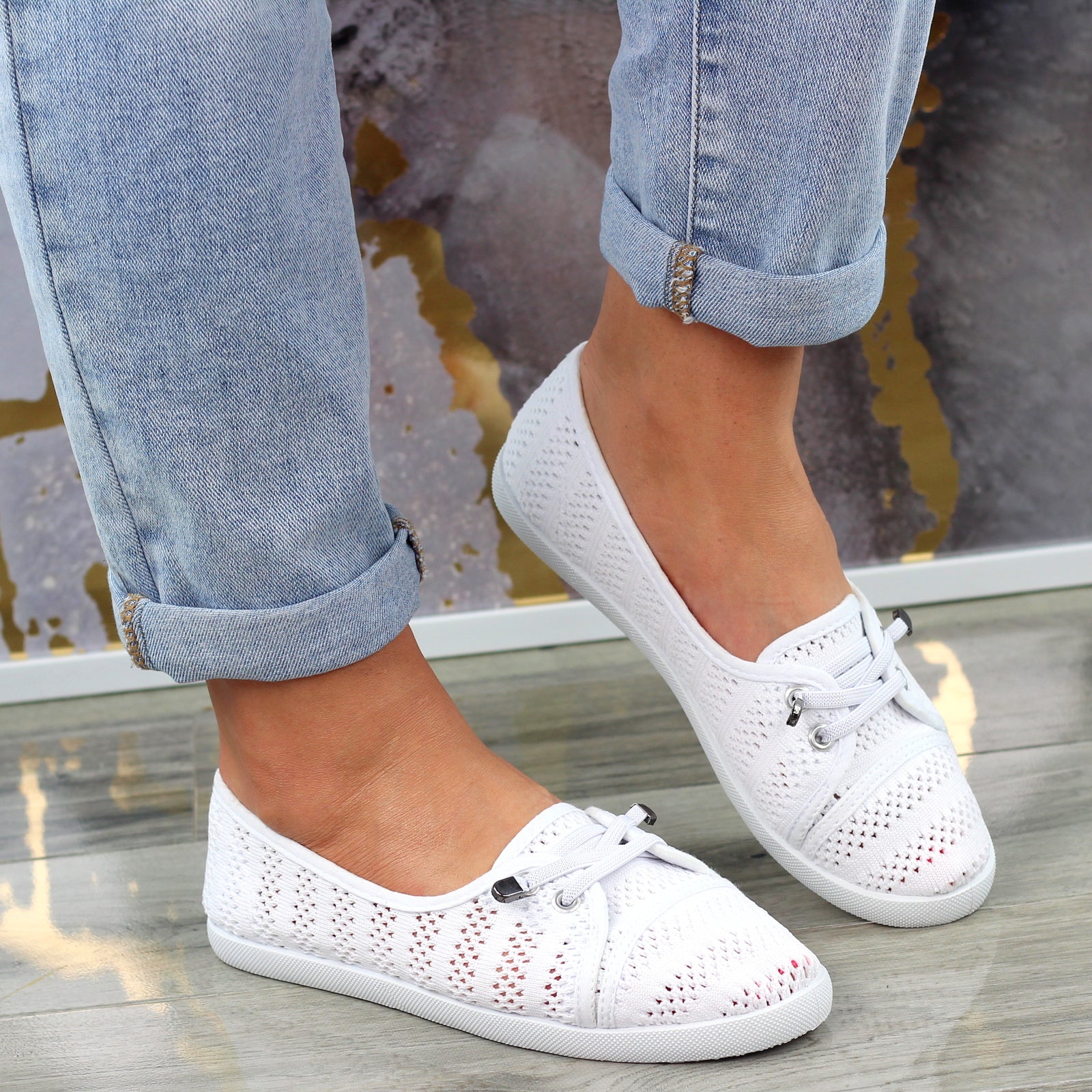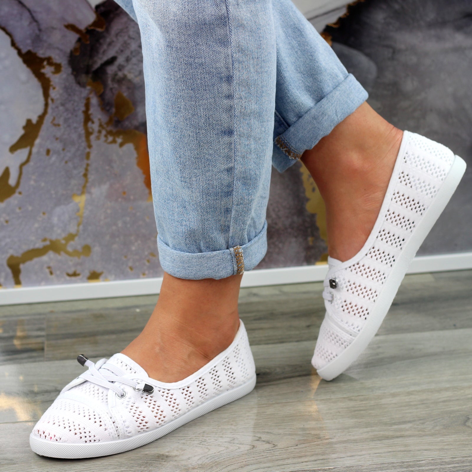 Białe Wygodne Koronkowe Trampki Tenisówki Damskie na lato