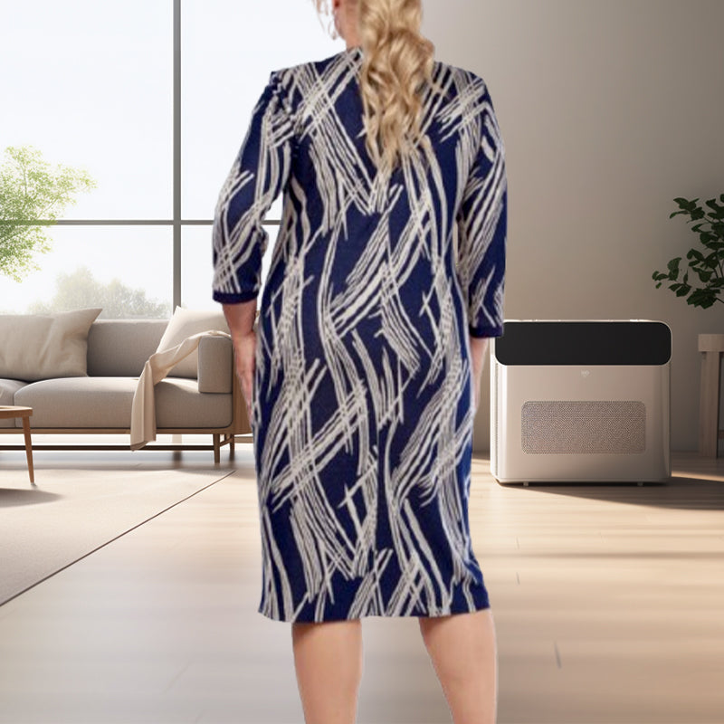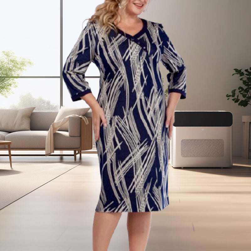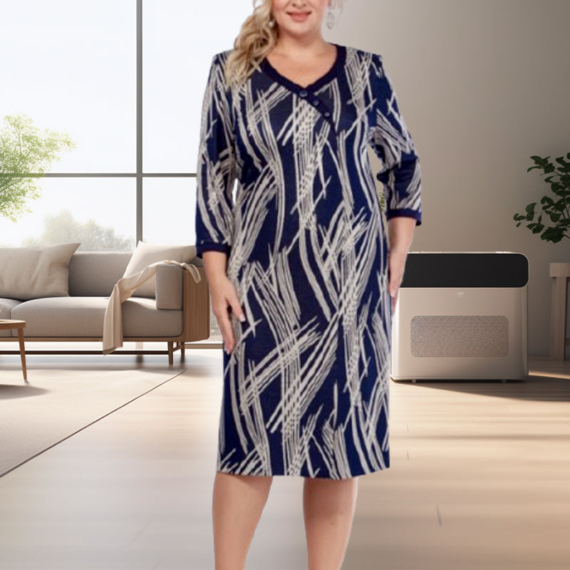 Zawartość opakowania: 1 * Elegancka damska sukienka z abstrakcyjnym wzorem i rękawami o długości siedem czwartych.