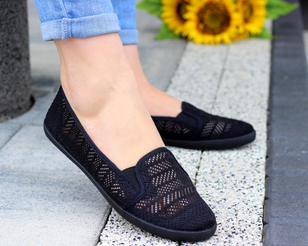 CZARNE TENISÓWKI KORONKOWE NA LATO