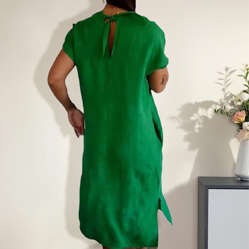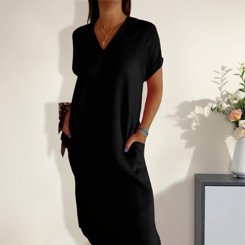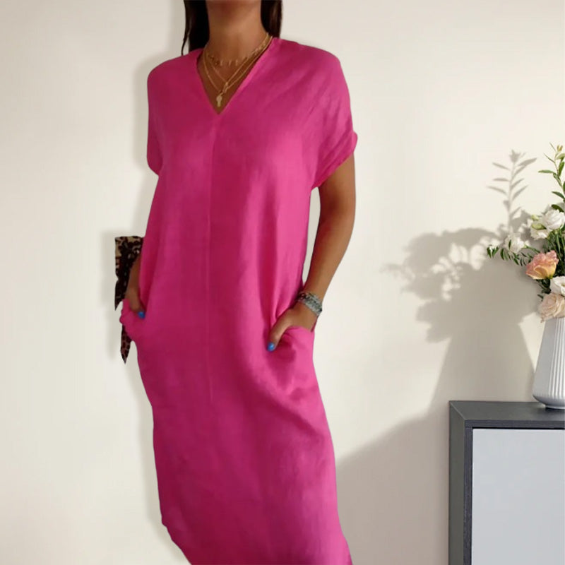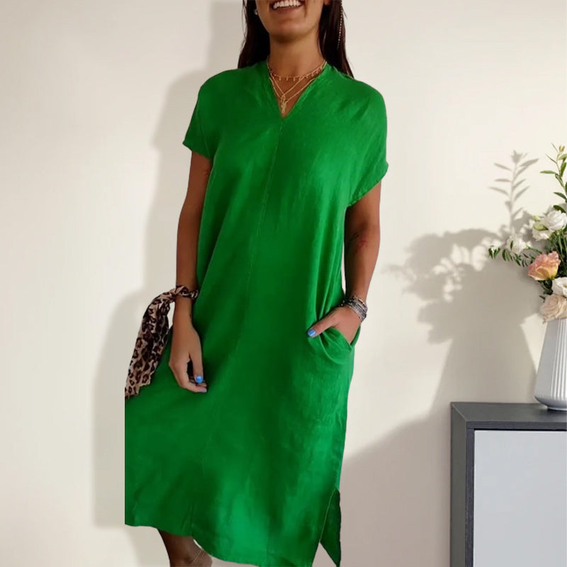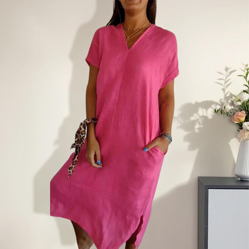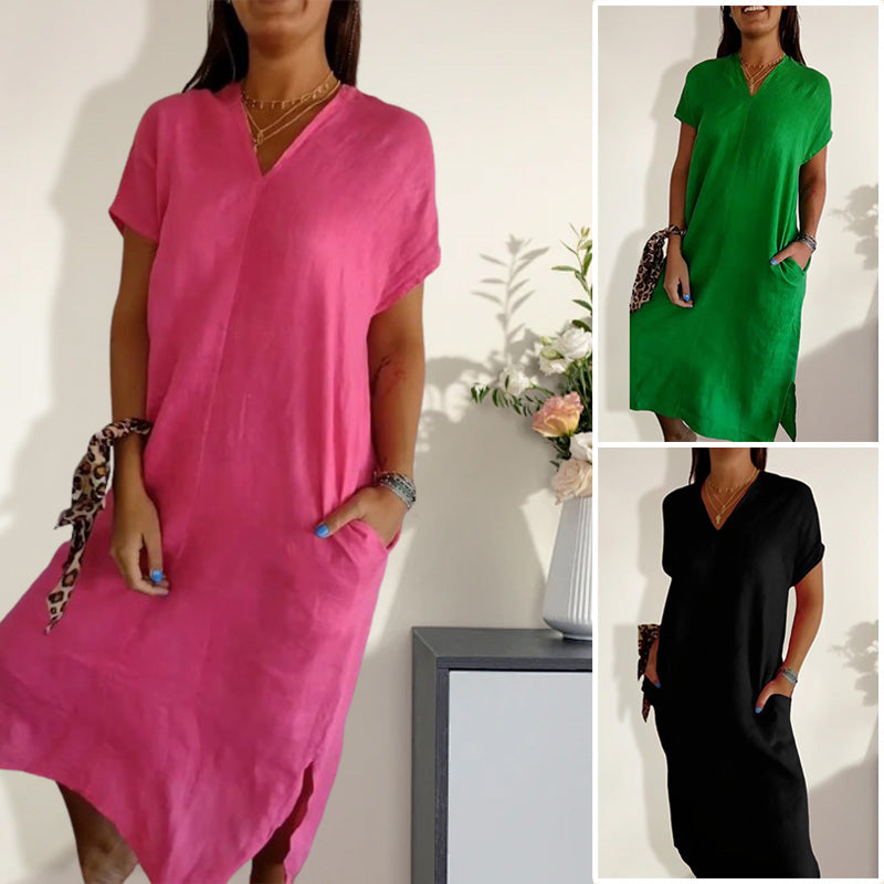 🌺Damska bawełniana i lniana sukienka z dekoltem w kształcie litery V i wycięciem