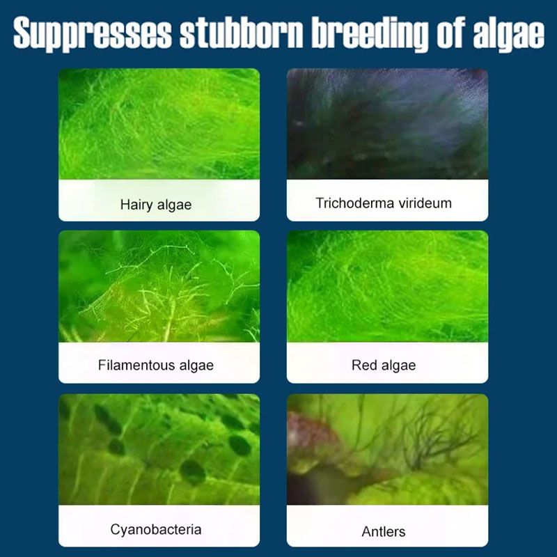 EKOLOGICZNY ALGAECIDE : Ekologiczny środek na algi zawarty w naszym produkcie zapewnia skuteczną kontrolę wzrostu glonów w akwarium. Glony mogą być nieestetyczne i zaburzać równowagę ekosystemu akwarium. Ten środek przeciw glonom pomaga kontrolować wzrost glonów, zapewniając czystszą wodę i bardziej atrakcyjne wizualnie środowisko w zbiorniku.