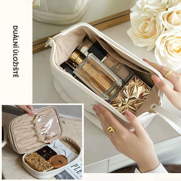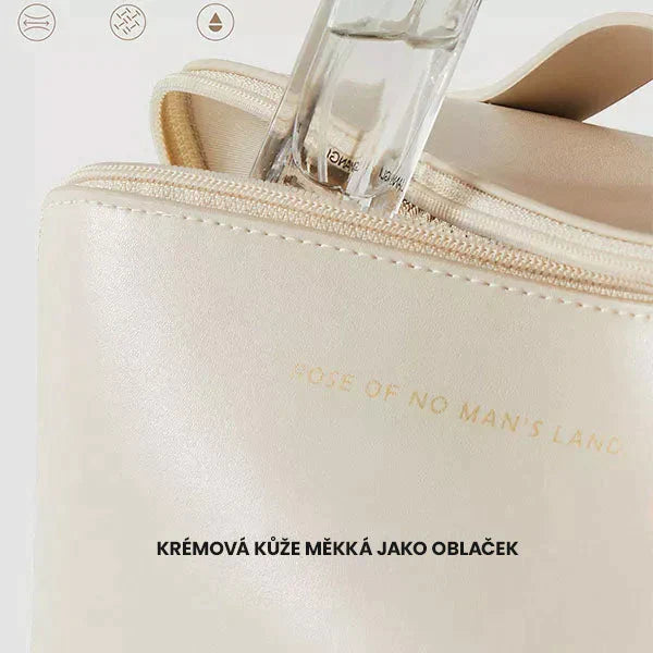 Dwuwarstwowa kosmetyczka chmurka wykonana z kremowej skóry, która jest miękka i premium jak chmurka.