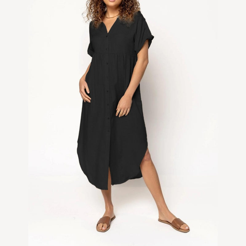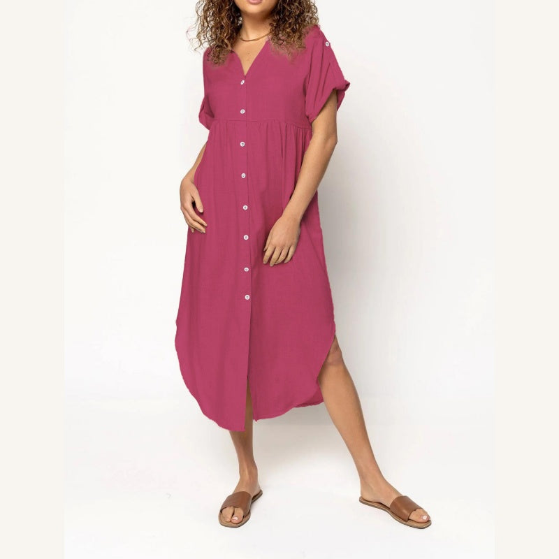 Damskie sukienki koszulowe z krótkim rękawem z guzikami
