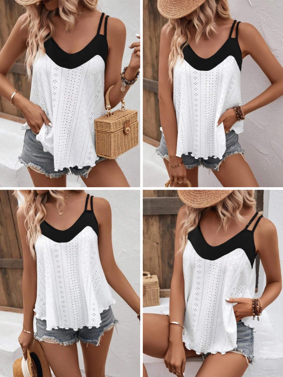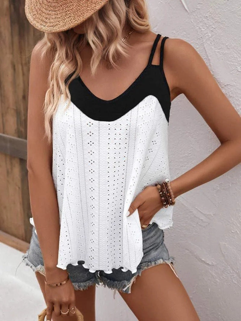 Lato 2023 w nowym stylu, mała kamizelka z ramiączkami, dopasowana kolorystycznie dolna koszula z okrągłym dekoltem