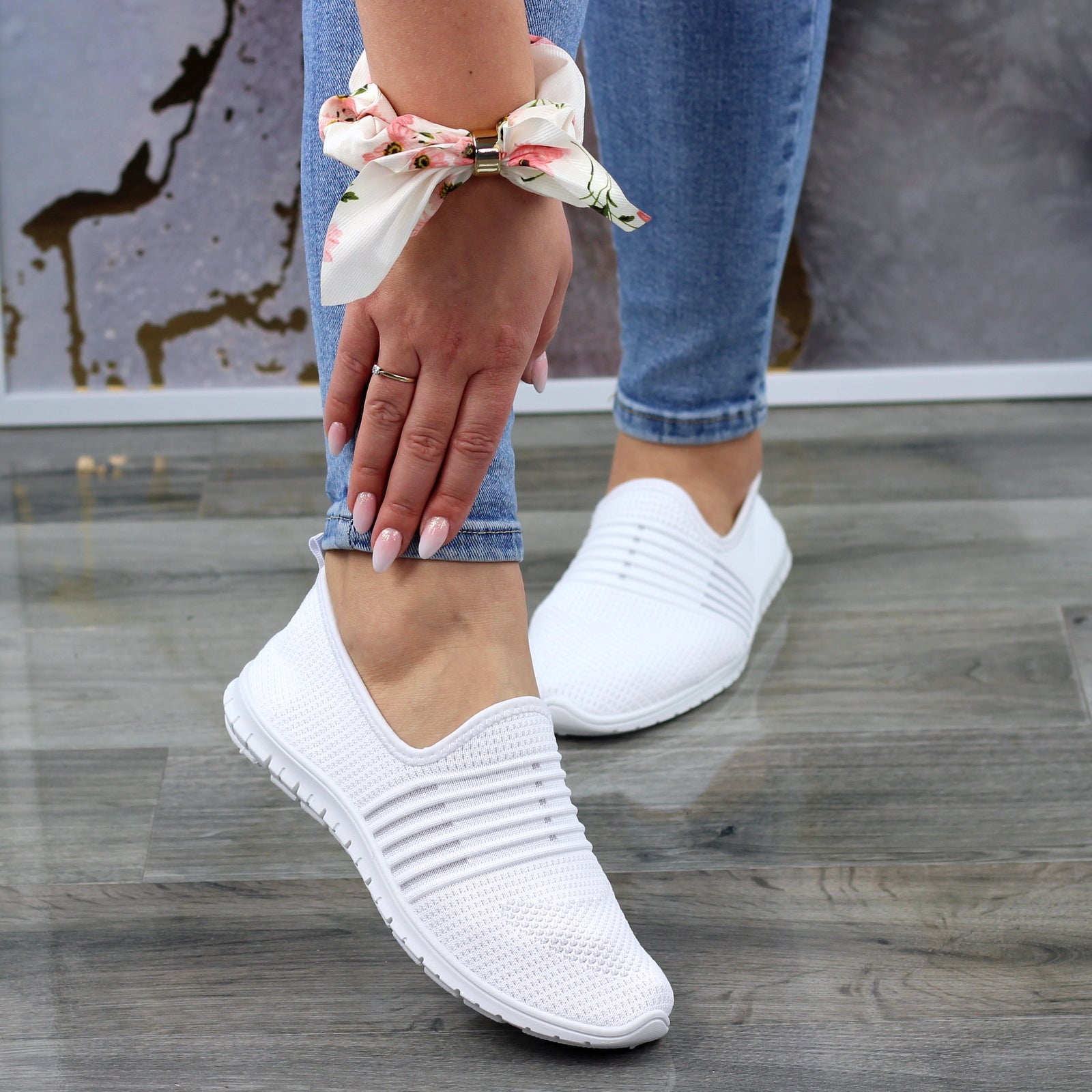 Białe trampki mięciutkie slim na wygodnej podeszwie wykonane z mięciutkiej elastycznej tkaniny.