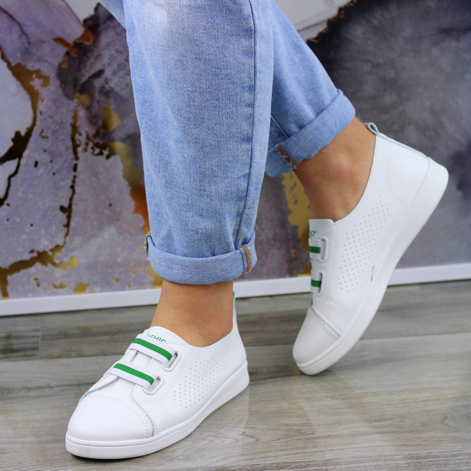 MODNE BIAŁE AŻUROWE SKÓRZANE TENISÓWKI TRAMPKI DAMSKIE WSUWANE FASHIONS green