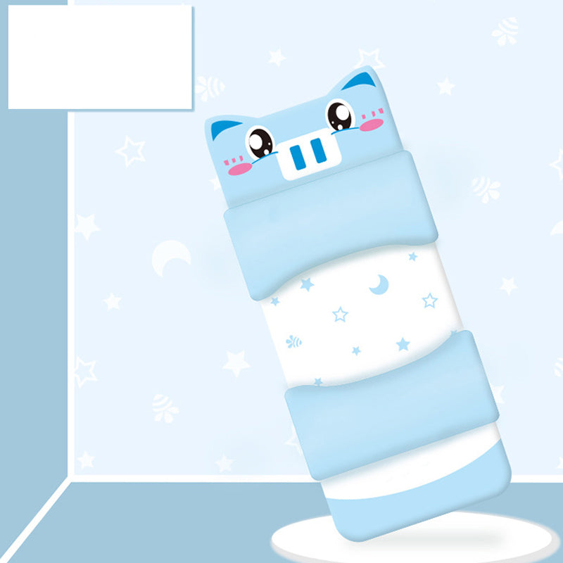 Delikatne, trójkątne nachylenie po obu stronach poduszki bezpiecznie zapobiega wypadnięciu dziecka z łóżka podczas ruchów lub przewracania się z boku na bok podczas snu. Pomaga również w utrzymaniu prawidłowej pozycji podczas snu na boku. Ukryty zamek błyskawiczny z tyłu poszewki na poduszkę zapewnia schludny wygląd i ułatwia zdejmowanie i pranie poszewki oraz regulację wypełnienia.