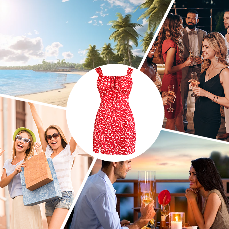 ARTYSTYCZNA FUZJA KWIATÓW – Żywe motywy botaniczne tańczą na tej sukience, łącząc czerwień, róż, zieleń i błękit w arcydzieło do noszenia. Kwadratowy dekolt dodaje nowoczesnego wyglądu, a szerokie ramiączka zapewniają wygodę. Lekki poliester powiewa na każdym kroku – przyciągaj wzrok na brunchu, randce lub przyjęciu w ogrodzie!