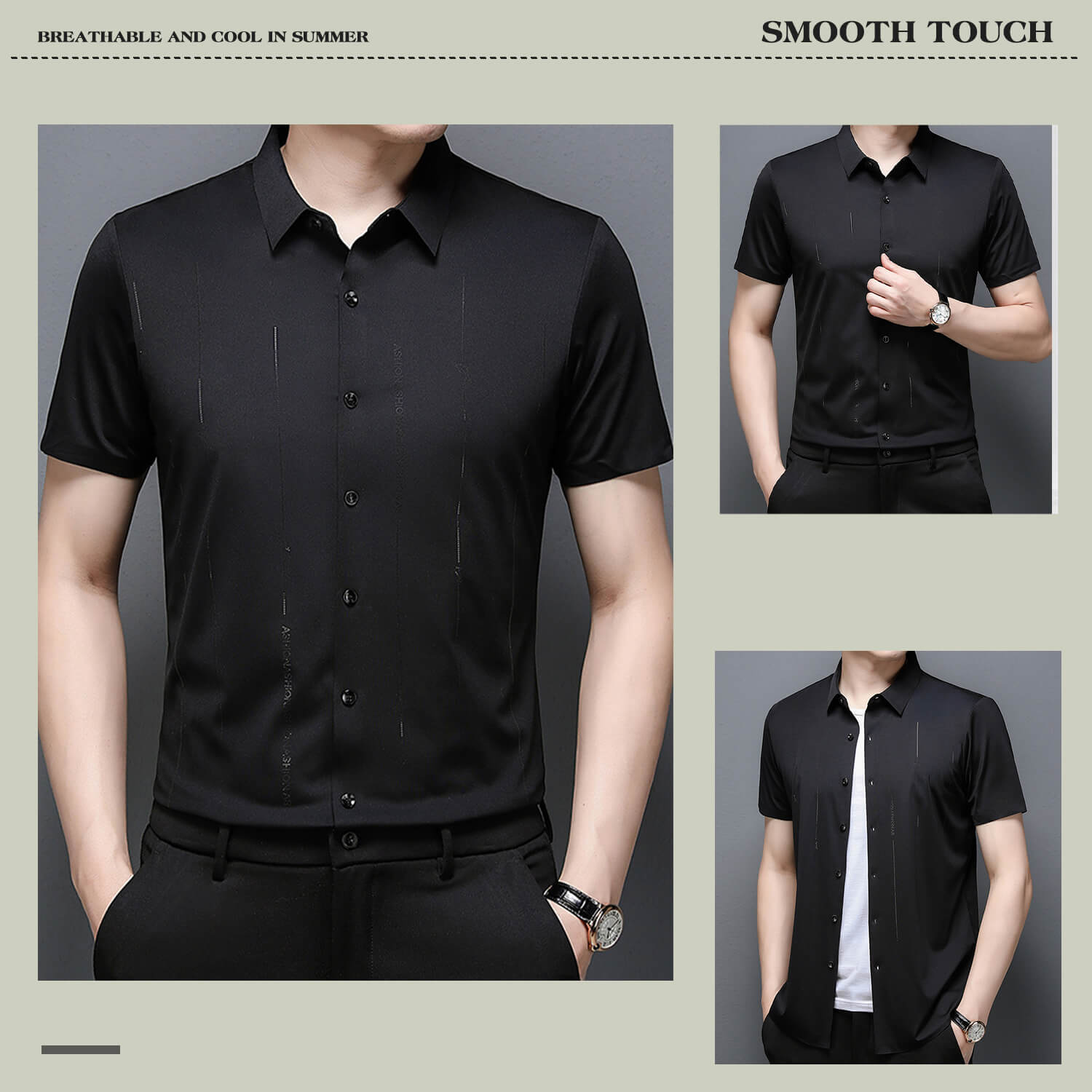 ❄️Męska koszula z jedwabiu lodowego o wysokiej elastyczności i odporności na zagniecenia