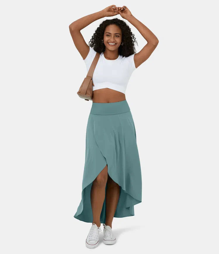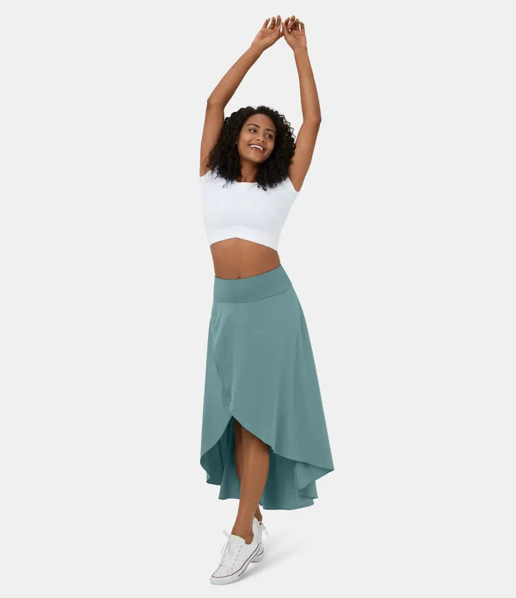 Spódnica 2 w 1 Quick Dry Casual Midi z wysokim stanem i niską falbaną