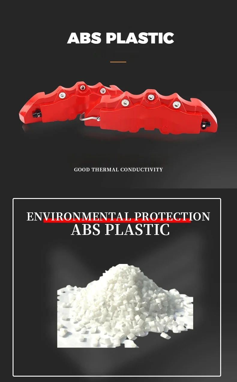 Te osłony zacisków hamulcowych są wykonane z materiału ABS odpornego na wysokie temperatury, który nie wpływa na skuteczność hamowania. Lekki materiał zapewnia lepsze odprowadzanie ciepła i charakteryzuje się wysokiej jakości wykończeniem powierzchni.
