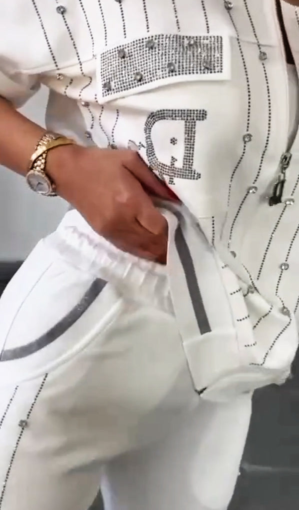 💎Dwuczęściowy zestaw z zamkiem błyskawicznym z kryształkami