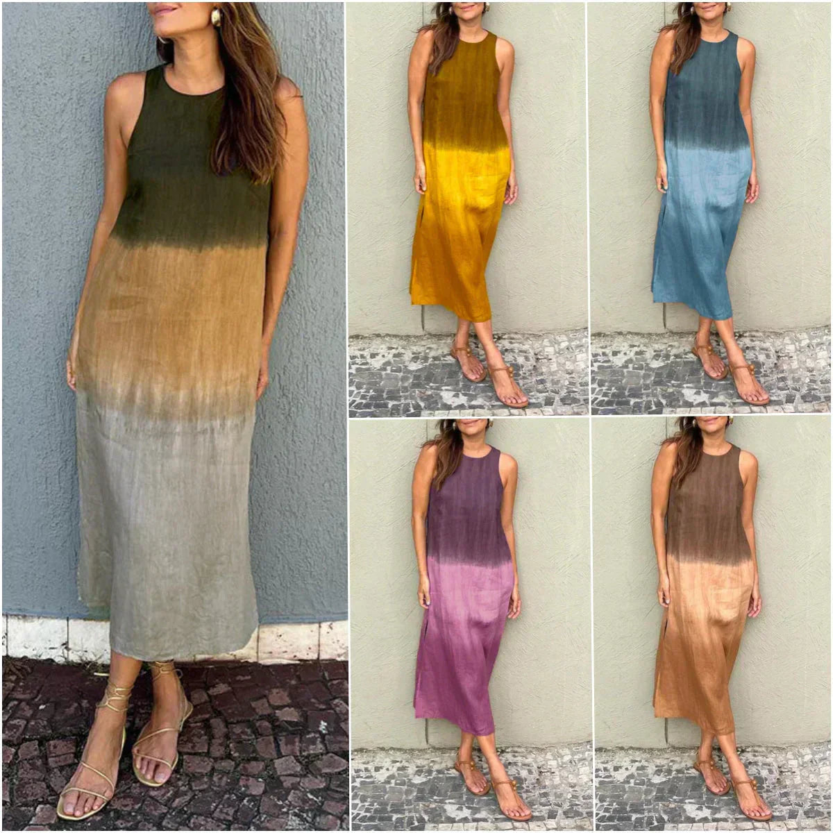 Ta swobodna sukienka bez rękawów to idealne połączenie stylu i wygody. Ta sukienka została zaprojektowana z myślą o swobodnych dniach i stanowi niezbędny element każdej garderoby.
