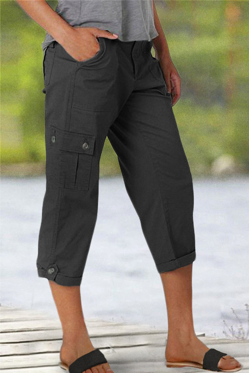 Spodnie Capri z kieszeniami i średnim stanem, zakładkami u dołu i kilkoma kieszeniami