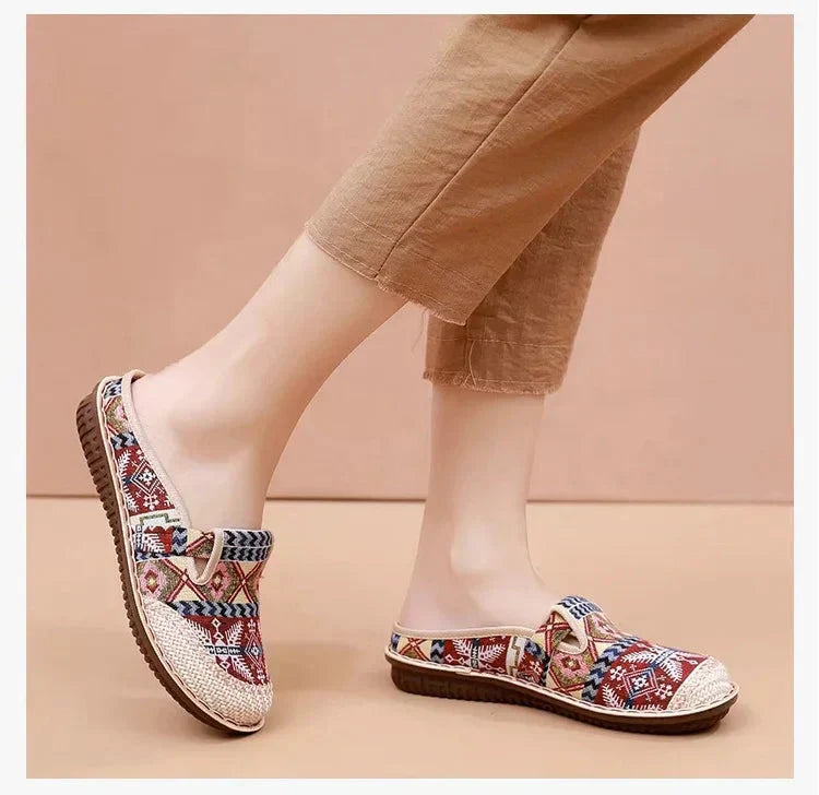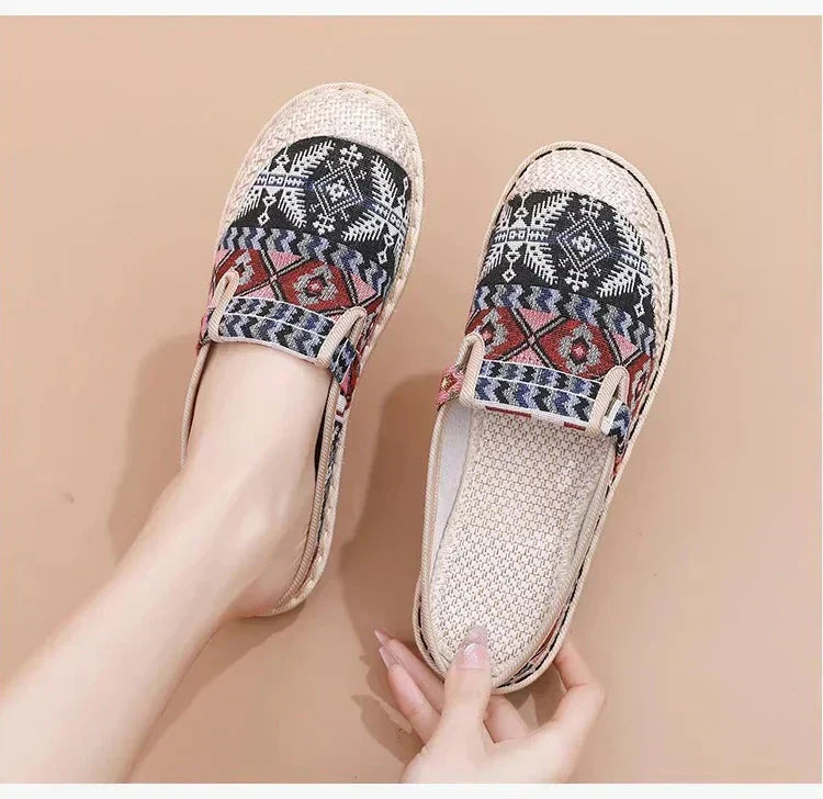 Jest to para codziennych butów wykonanych z bawełny i lnu. Cholewka wykonana jest z bawełny i lnu, dzięki czemu jest przewiewna i wygodna w codziennym noszeniu. Obcas butów jest krótszy, dzięki czemu łatwiej je zakładać i zdejmować. Wzór na cholewce jest kolorowy i ma etniczny charakter, co dodaje butom modnego charakteru. Podeszwa jest miękka i zapewnia dobre wsparcie i wygodę podczas dłuższego chodzenia. Te buty nie tylko ładnie wyglądają, ale i są bardzo praktyczne, idealne do codziennych podróży.