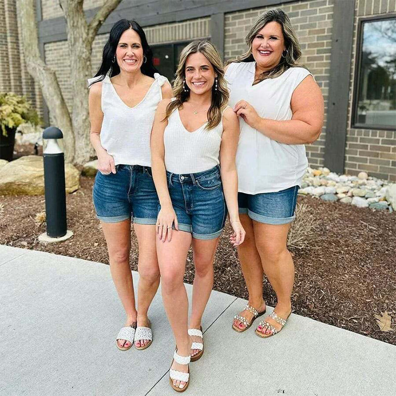 Ciesz się słońcem i zachowaj chłód bez wysiłku w naszych jeansowych szortach Mid Rise, które są idealnym wyborem na letnią zabawę!