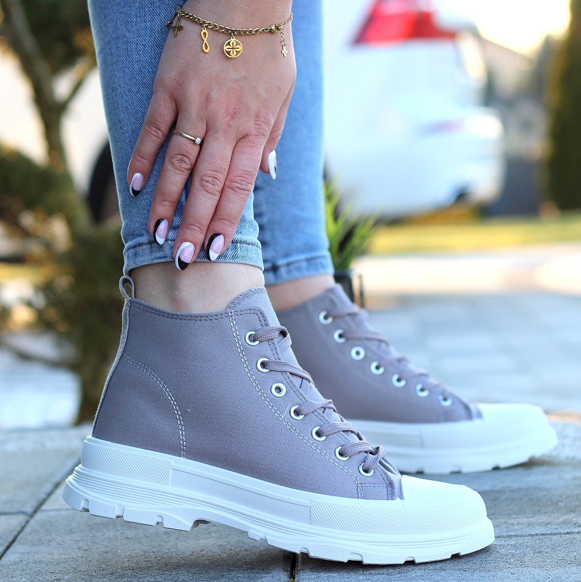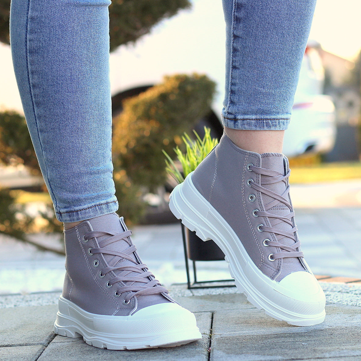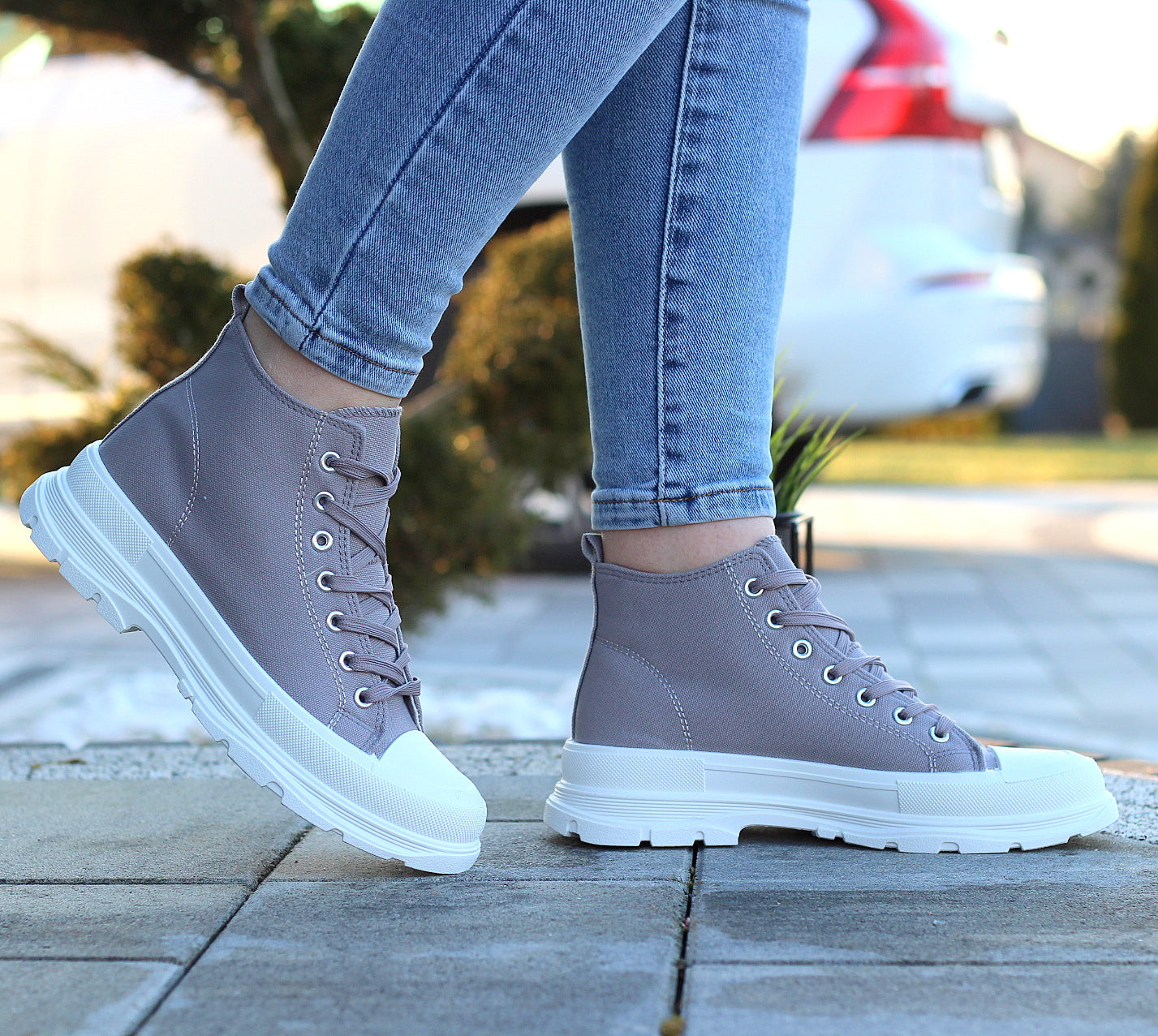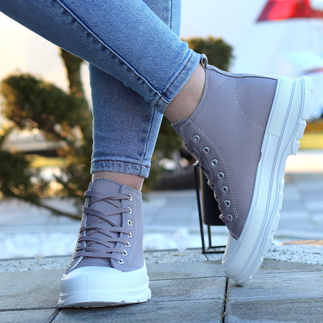 Wysokie Szare Trampki Damskie Sznurowane Star