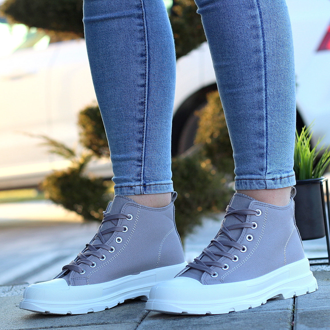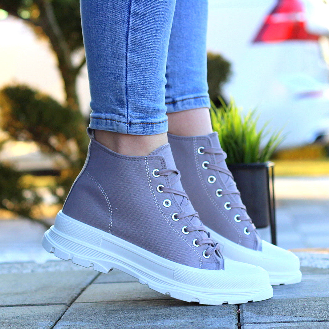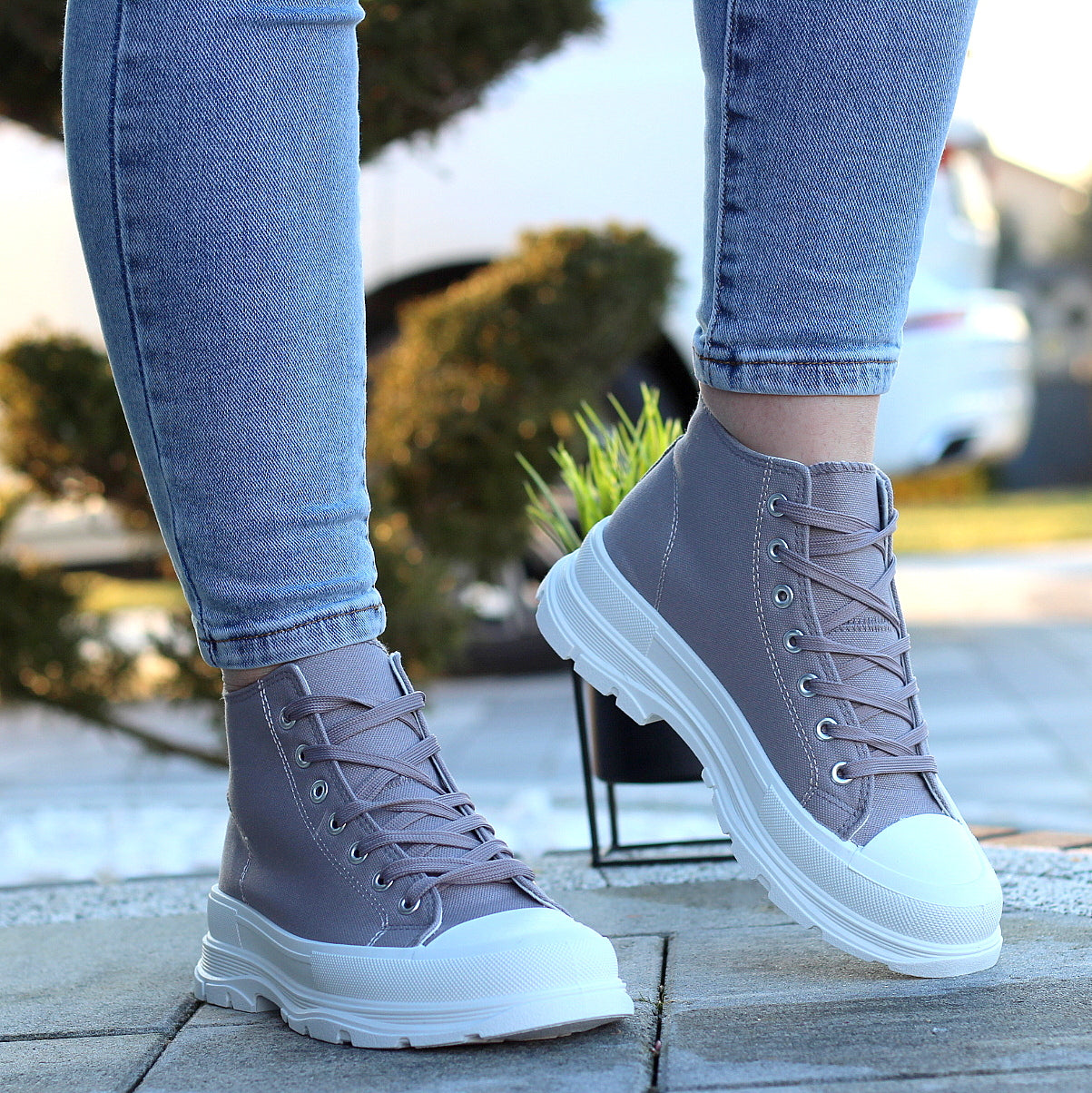Wysokie Szare Trampki Damskie Sznurowane Star